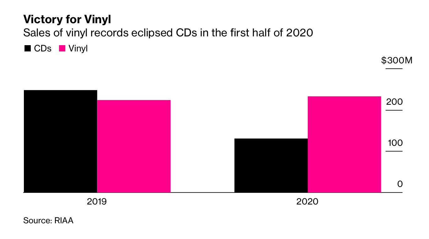 💿 How’s that CD collection? CDs just don’t have the same appeal as vinyl. Hard to beat the big artwork, old school sound, and overall hipster level of a vinyl. That appeal and the rise of streaming has sent CD sales to the bottom, putting vinyl in the top spot. (link $)